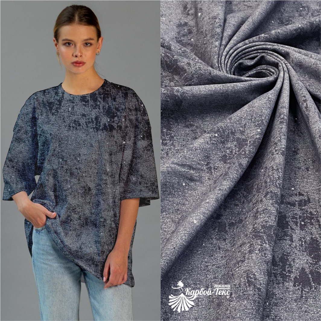 Кулирная гладь с велюровым эффектом «варенка» с глиттером - это стильное и тактильно невероятно приятное трикотажное полотно, которое сочетает в себе комфорт натурального хлопка и выразительный дизайнерский эффект.