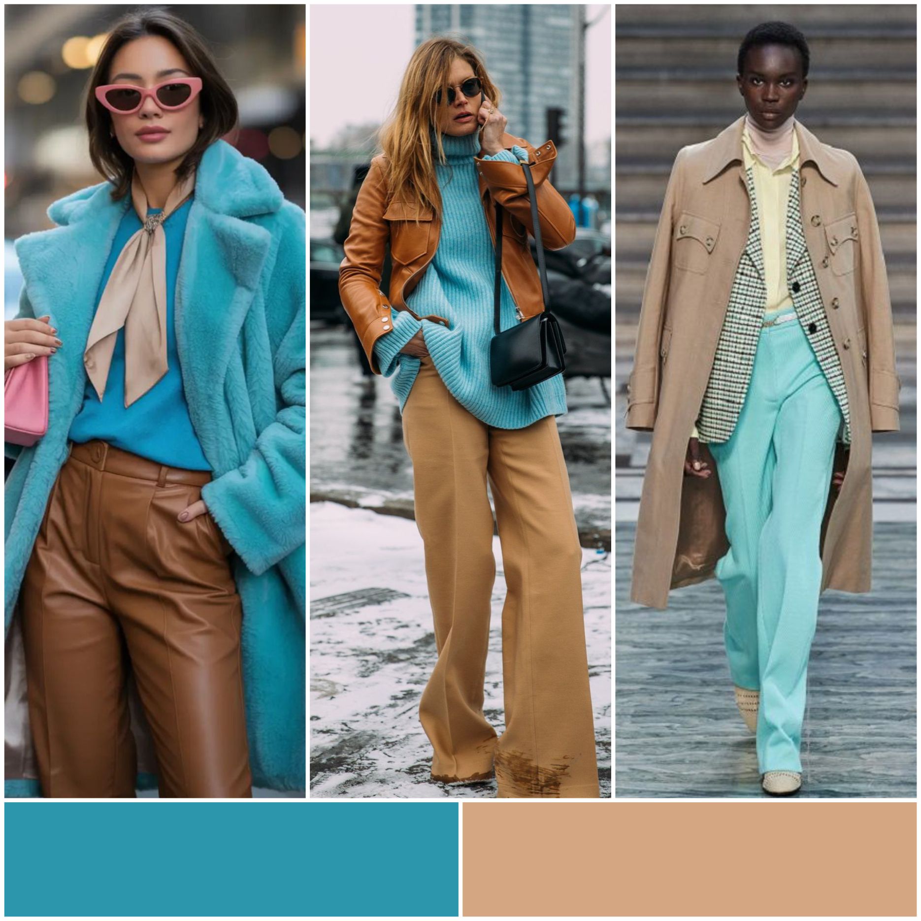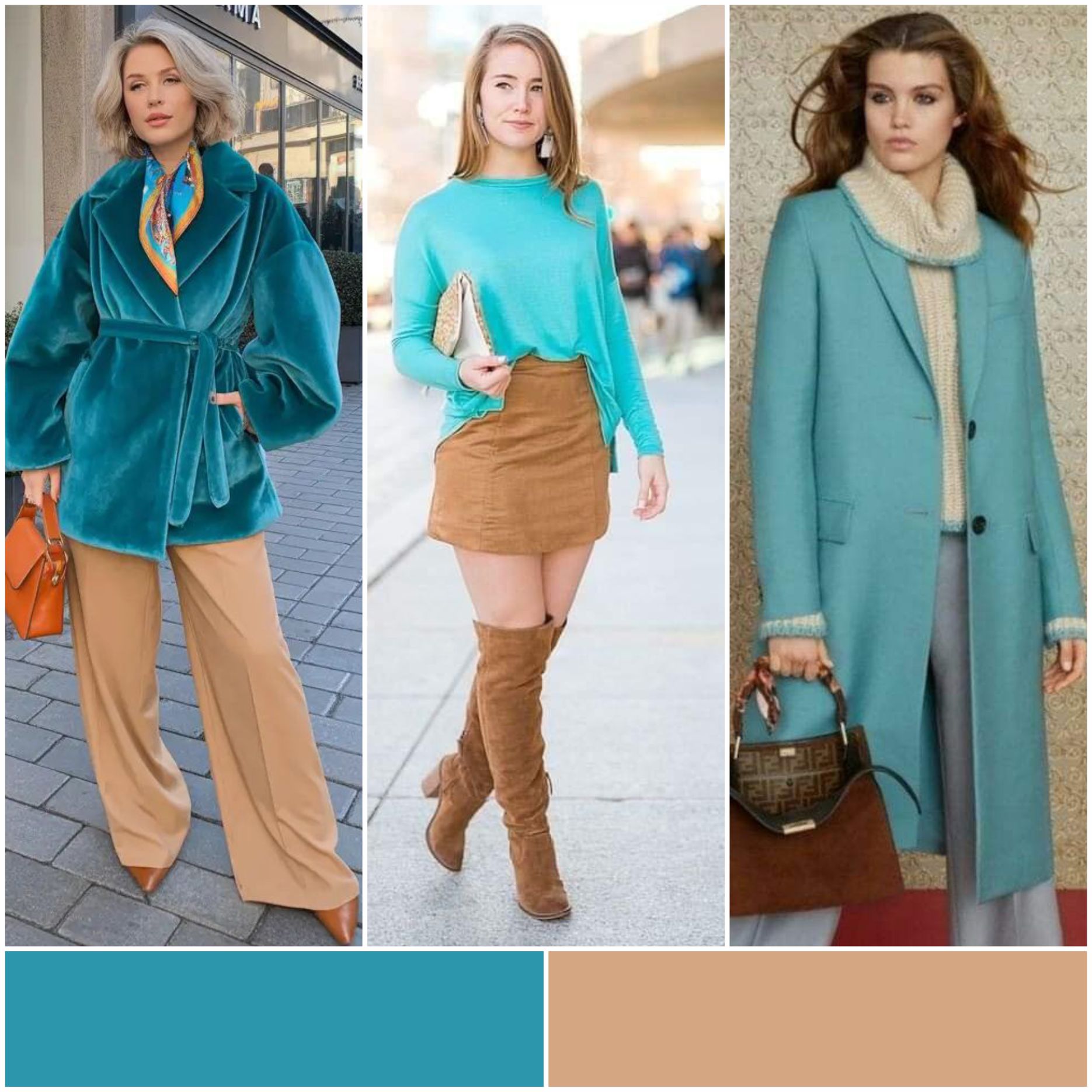 Бежевый — универсальный и спокойный цвет, который отлично сочетается с ярким бирюзовым. Это сочетание напоминает о теплых морских днях и создает ощущение свежести. Бежевый свитер и бирюзовые брюки или аксессуары — идеальный вариант для зимних прогулок.