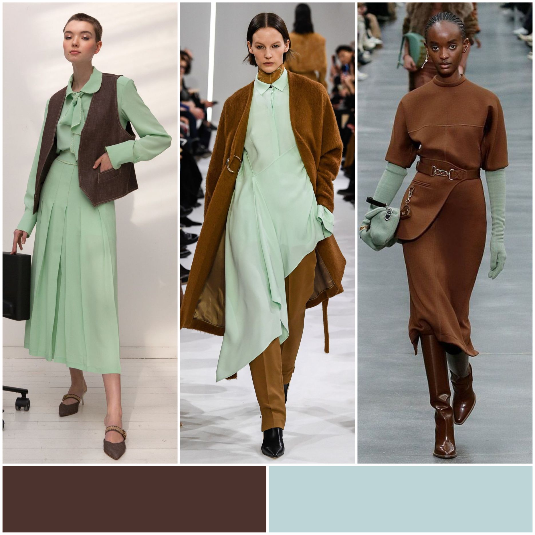 Это сочетание дарит ощущение уюта и свежести. Шоколадный цвет добавляет глубины и тепла, а мятный вносит нотку легкости и игривости. Попробуйте надеть шоколадное пальто с мятным шарфом или свитером — такой образ будет выглядеть стильно и гармонично.
