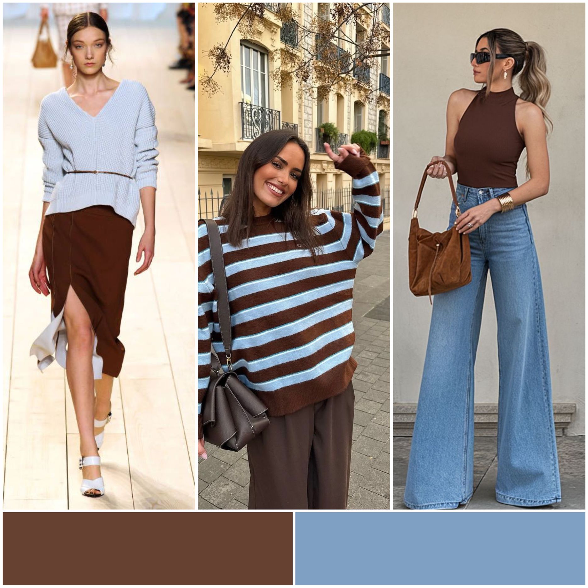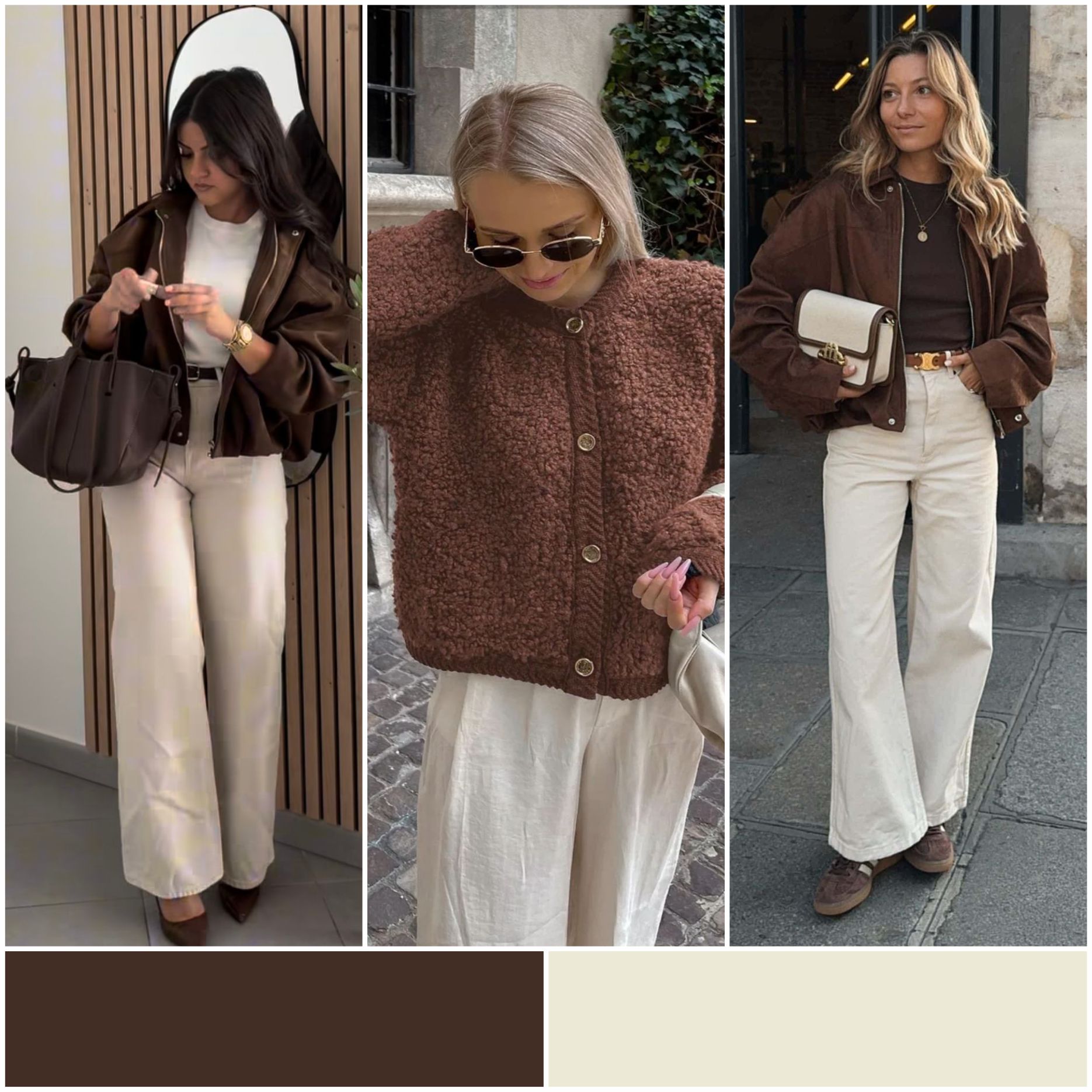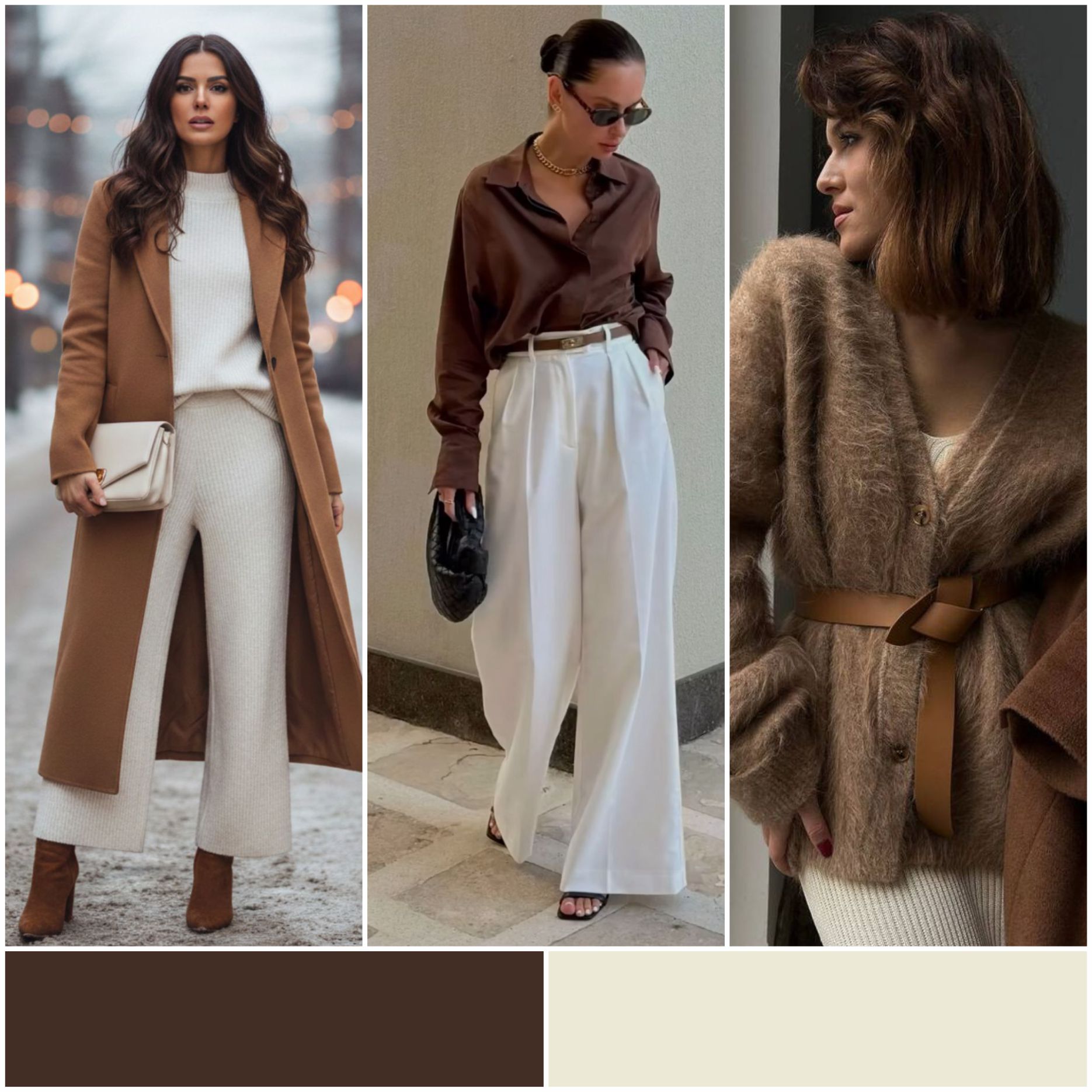 Самое уютное и дорогое на вид сочетание. Молочный освежает образ, а коричневый добавляет глубину и статус.