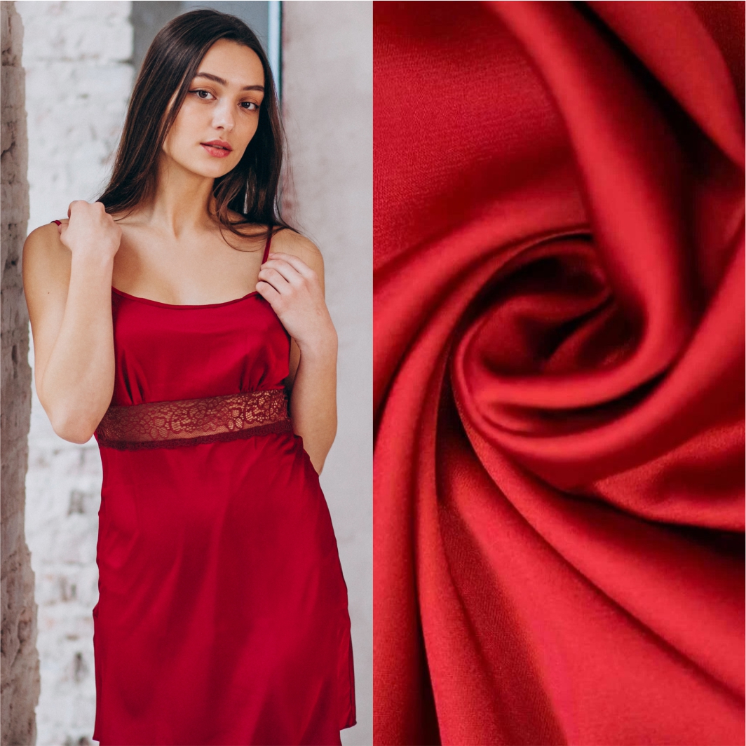 Шелк «Армани» - ткань которая сочетает в себе внешние данные натурального шелка и синтетический состав. Лицевая поверхность имеет структуру атласа с благородным, приглушенным блеском, изнаночная сторона матовая. Великолепно драпируется, образуя даже очень мелкие складки.