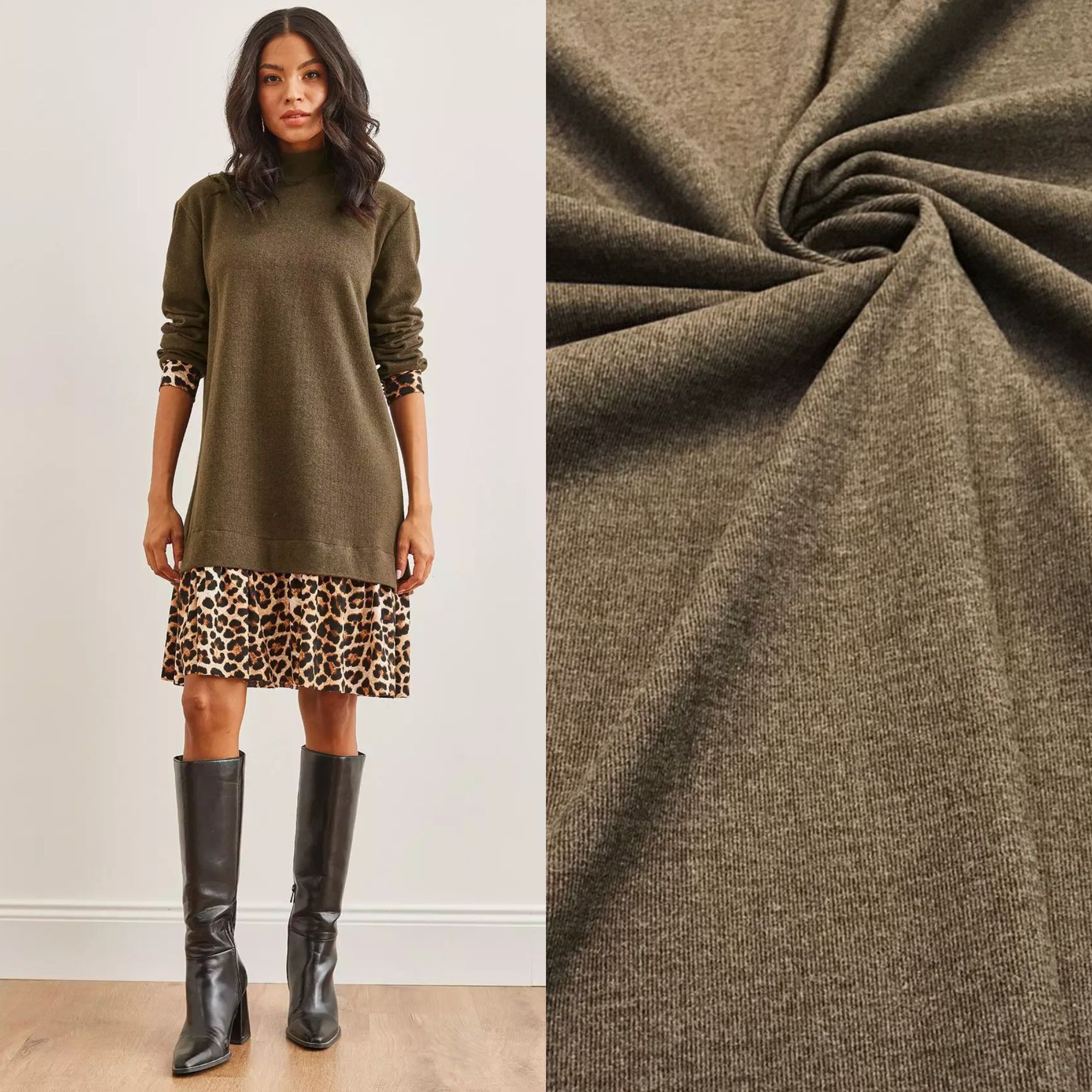 Эта трикотажная ткань отлично подойдет для пошива водолазок, жилетов, юбок, платьев, термобелья, леггинсов, пледов, головных уборов и зимних аксессуаров.