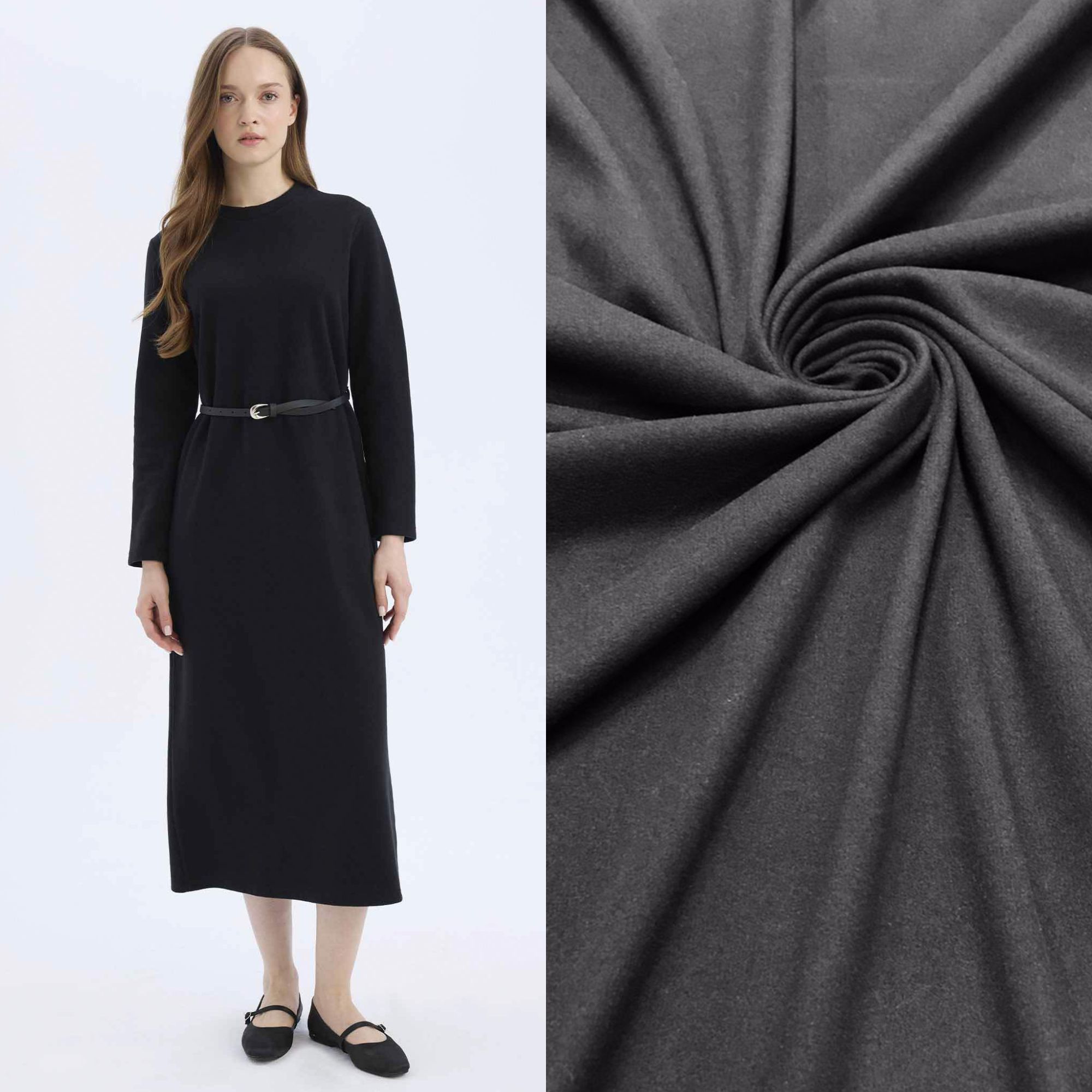 Эта трикотажная ткань отлично подойдет для пошива водолазок, жилетов, юбок, платьев, термобелья, леггинсов, пледов, головных уборов и зимних аксессуаров.