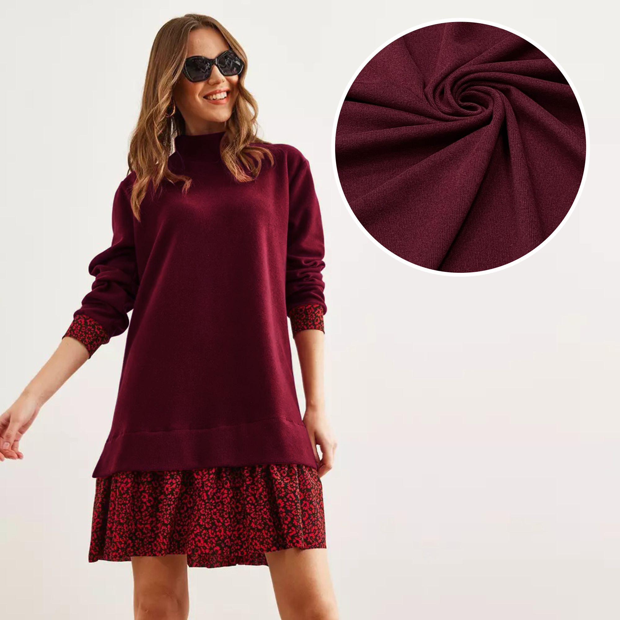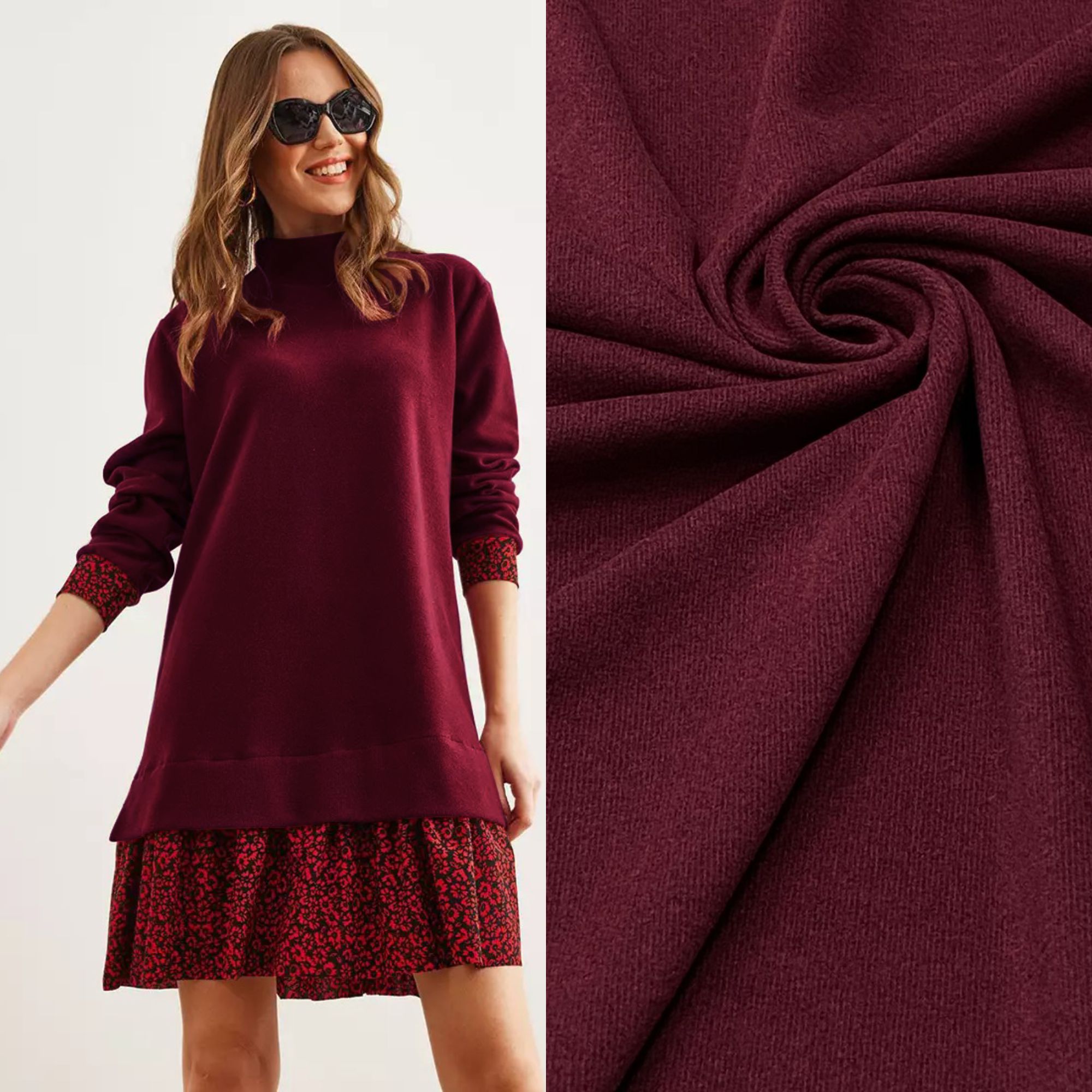 Эта трикотажная ткань отлично подойдет для пошива водолазок, жилетов, юбок, платьев, термобелья, леггинсов, пледов, головных уборов и зимних аксессуаров.